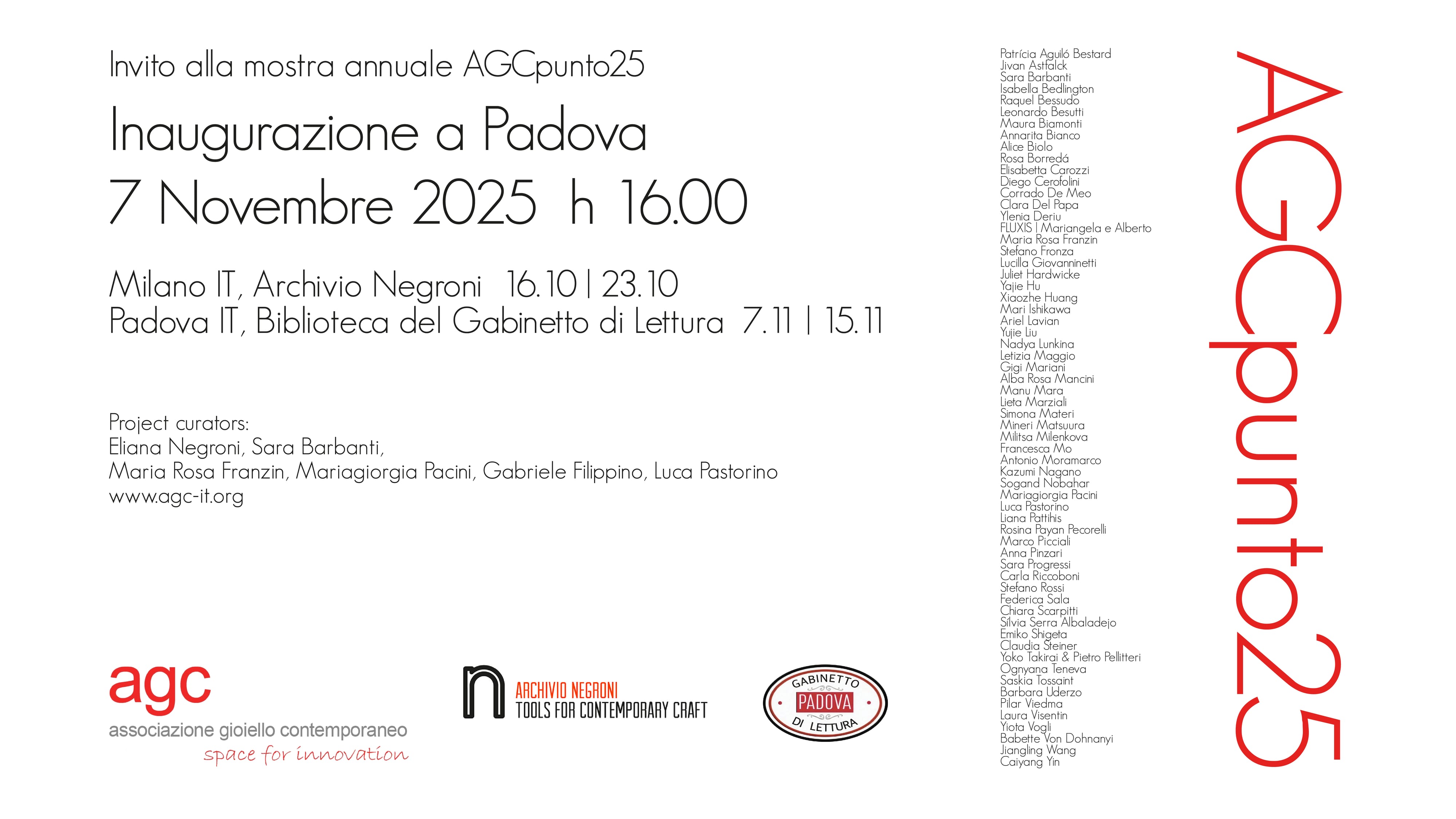 AGCpunto25 is the annual exhibition of the AGC Contemporary Jewellery Association in Italy.