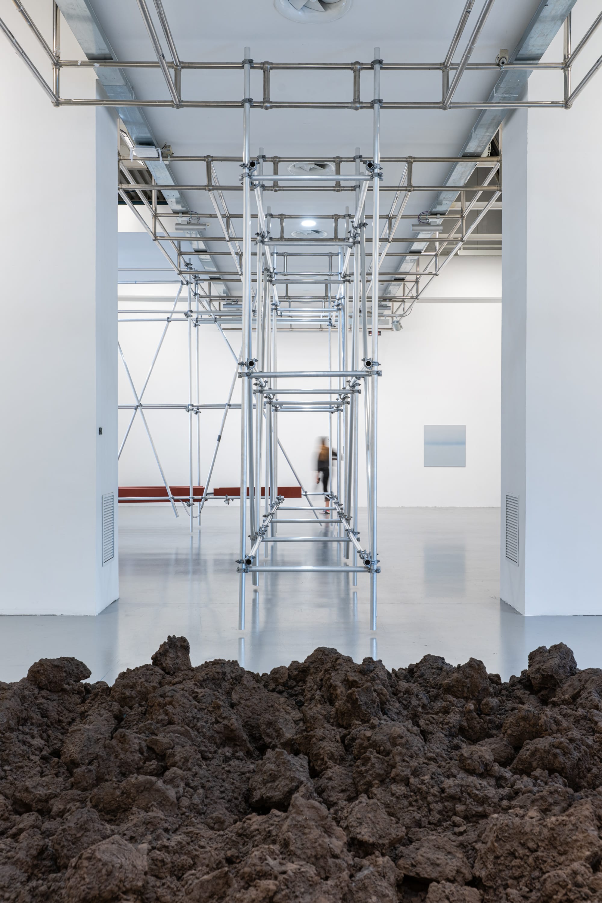 Aluminium tubes, clamps, egg tempera on wood, heads, motors, toothed cylinder
