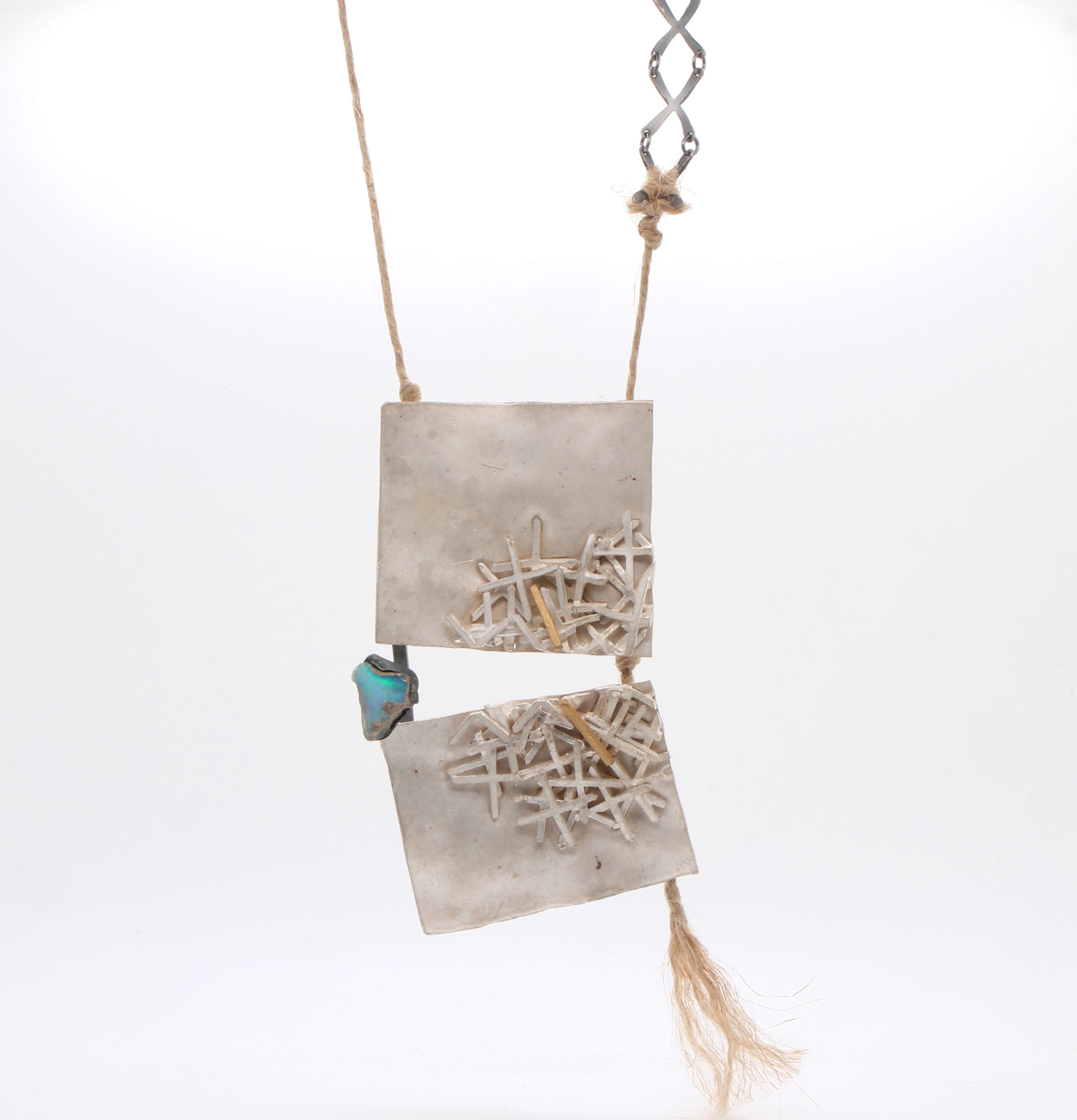 Silver, 750 gold, ethiopian opal, patinas, esparto rope