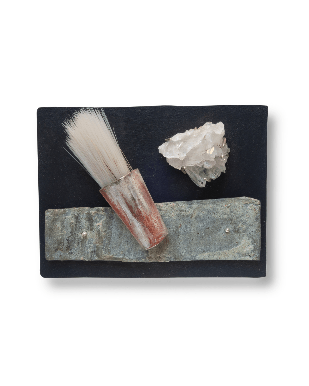 Mineral, silver, brass, alpaca, tin, perspex, amber dust, paint, brush