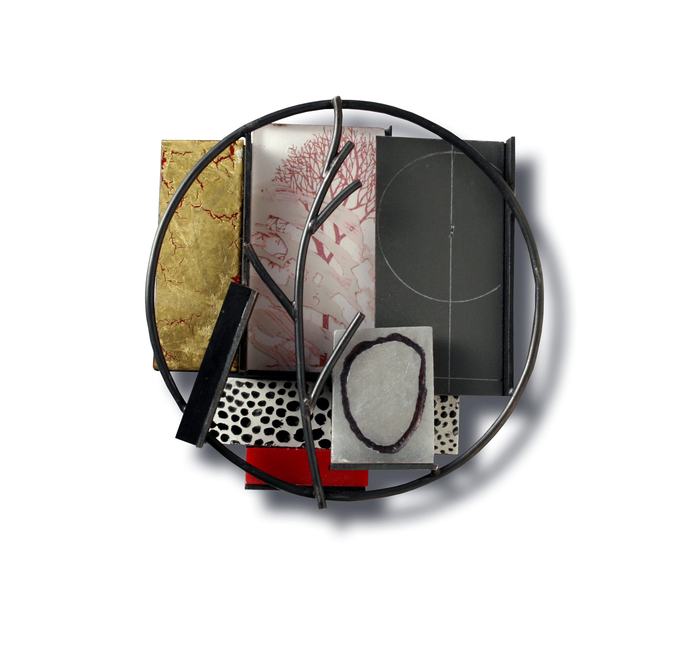 TechniqueOxidized nickel silver, enamel on steel, gold leaf, plastic, paper, alabaster, acrylic painting