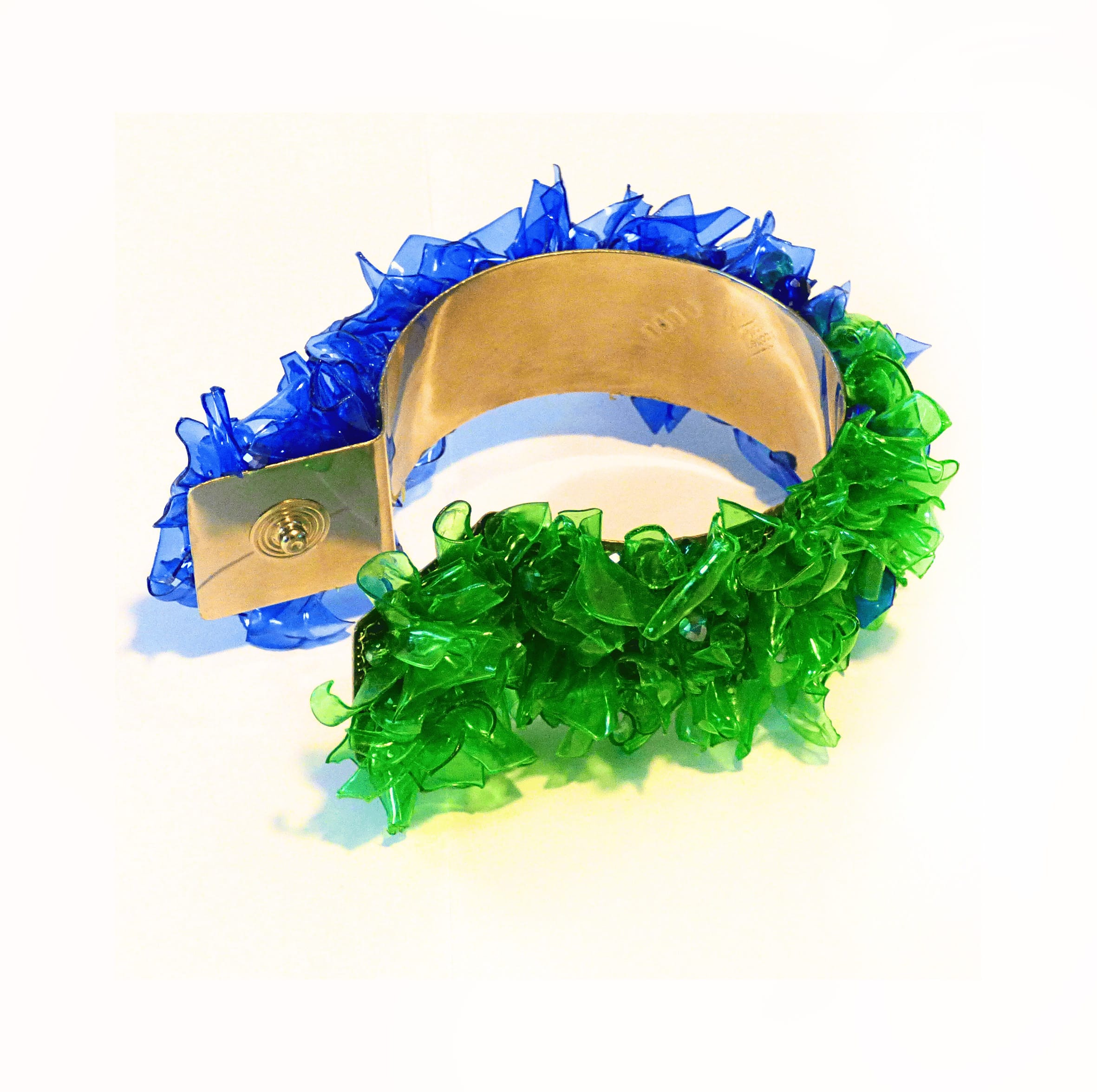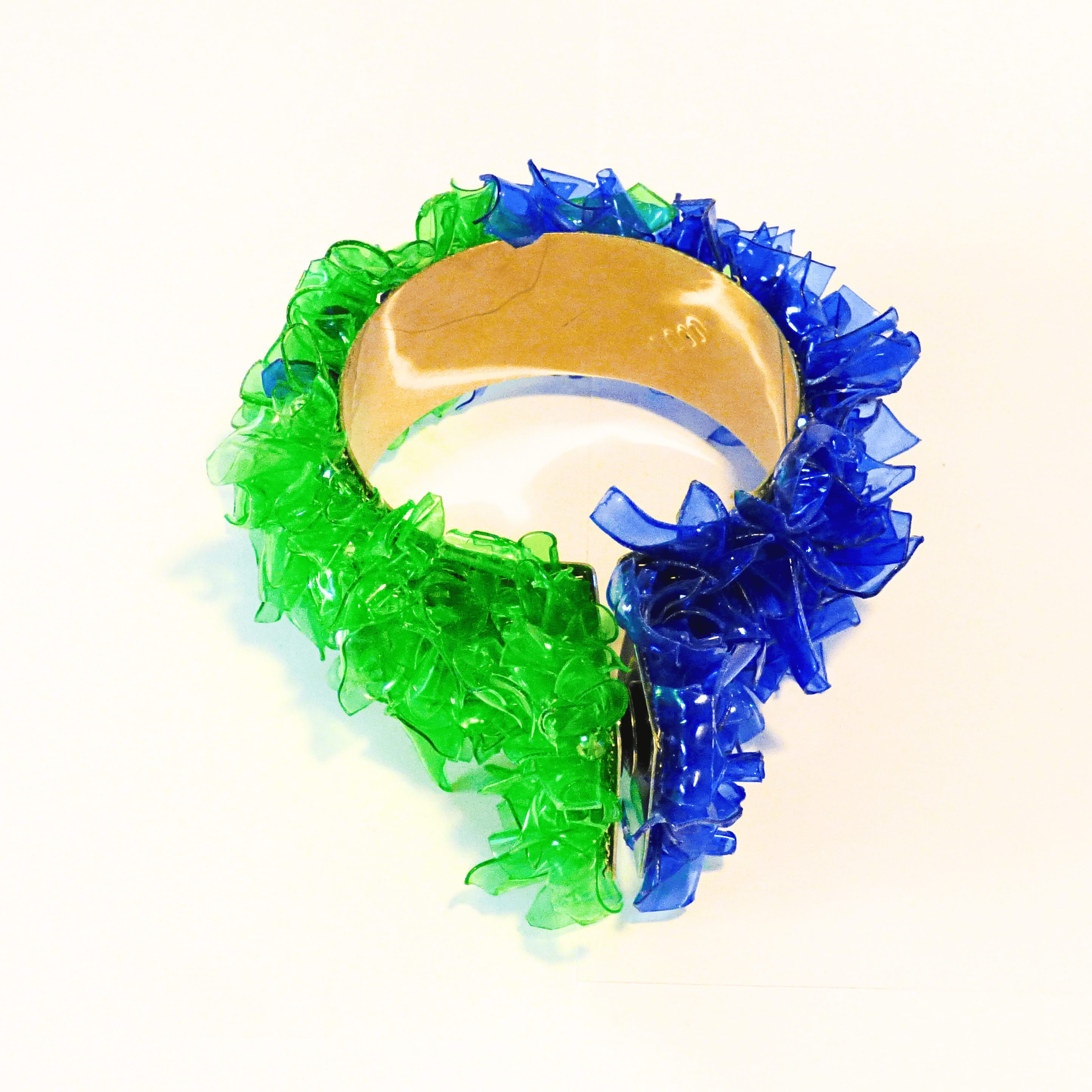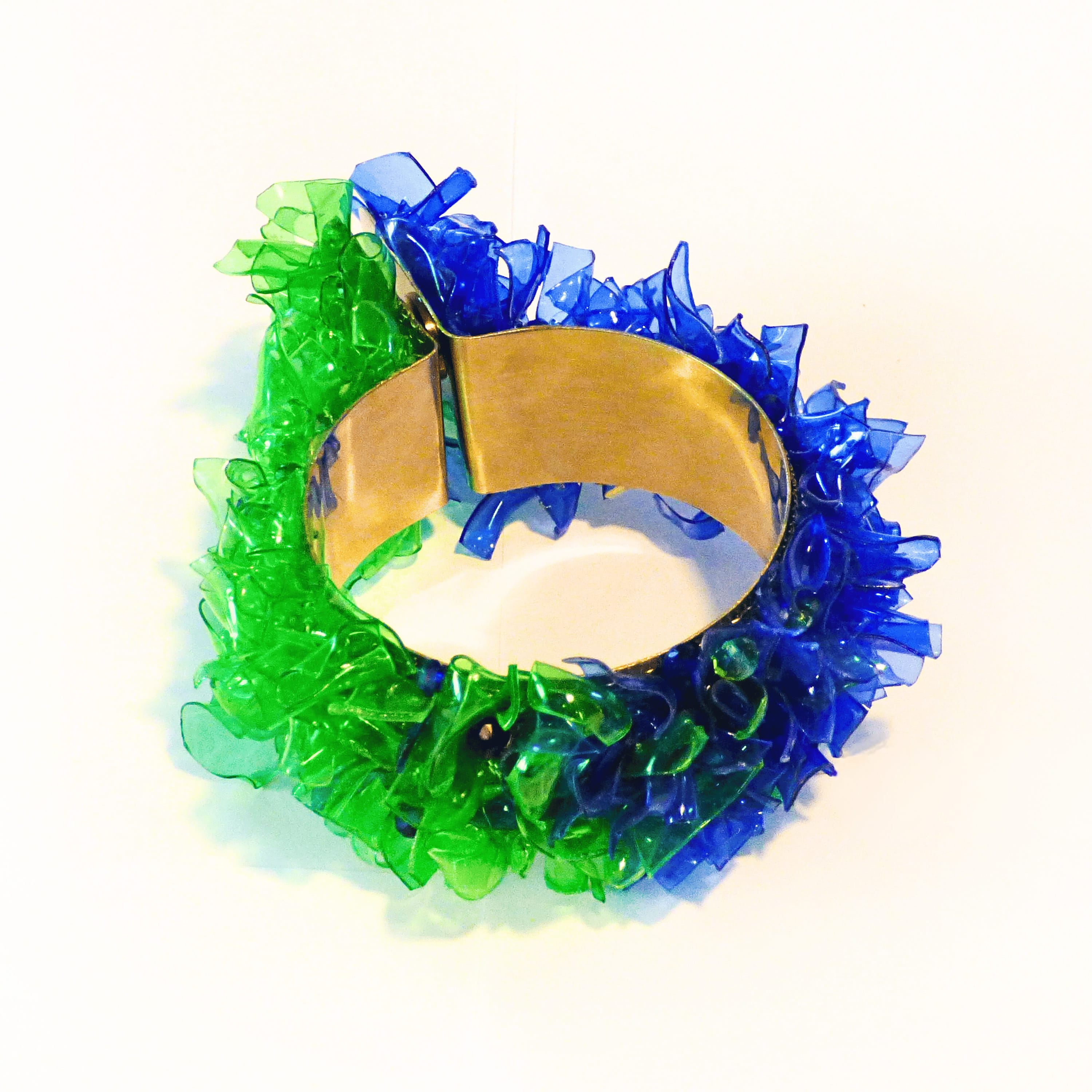 Un braccialetto "polsino" come un piccolo capo d'abbigliamento. Circa 600 pezzi montati con ricamo pavè (non incollati) su una base metallica.