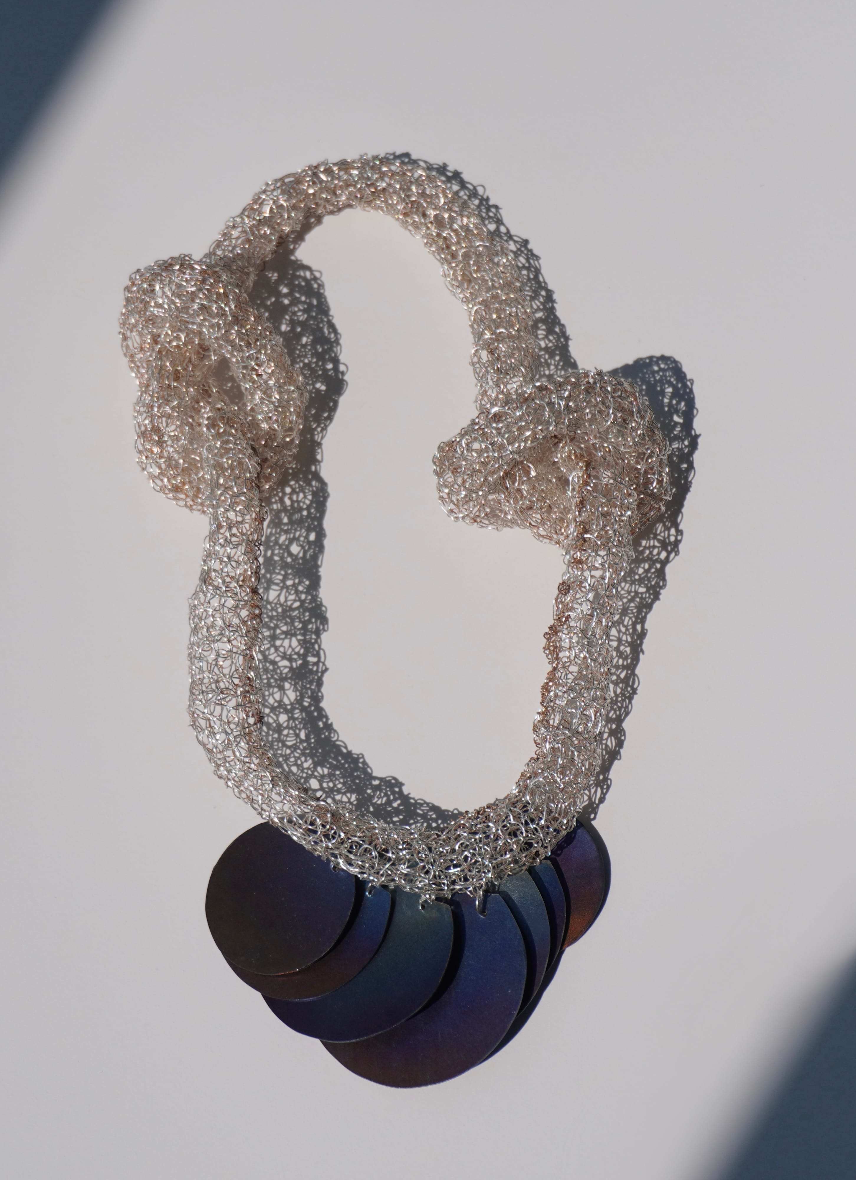 Tecnicaobject, argento, titanio, uncinetto, anodizzazione a caldo | silver, titanium, crochet, heat anodizing