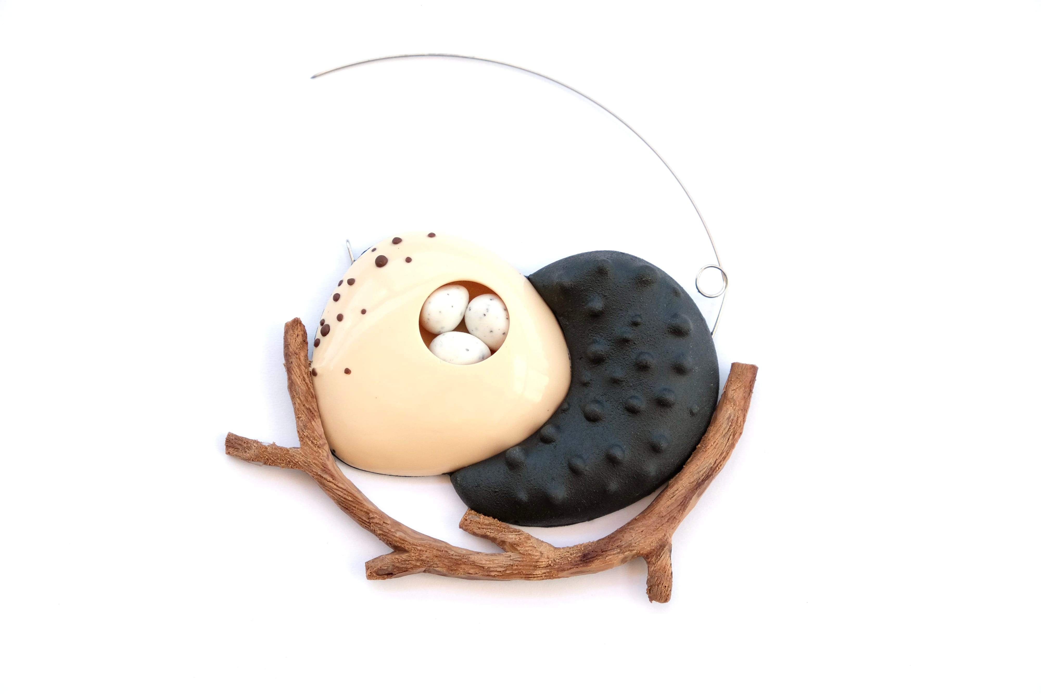 A contemporary brooch capturing the moment of new life emerging through abstract forms and organic contrasts. Una spilla contemporanea che cattura l'attimo della nuova vita che emerge attraverso forme astratte e contrasti organici.