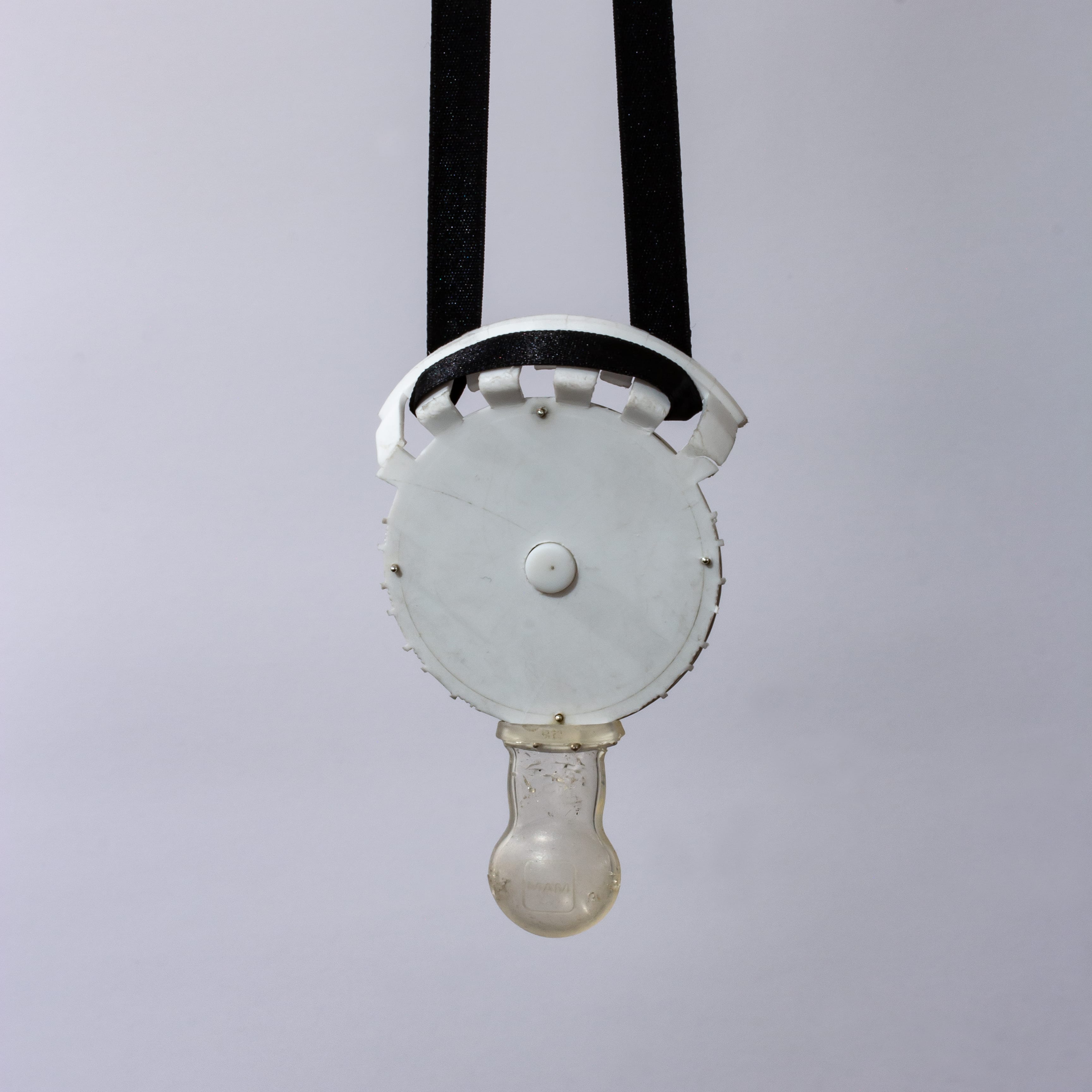 Tecnicacollana / necklace, objet trouvé in plastica, ciuccio, argento 925, cordone | found plastic object, found pacifier, sterling silver, cord