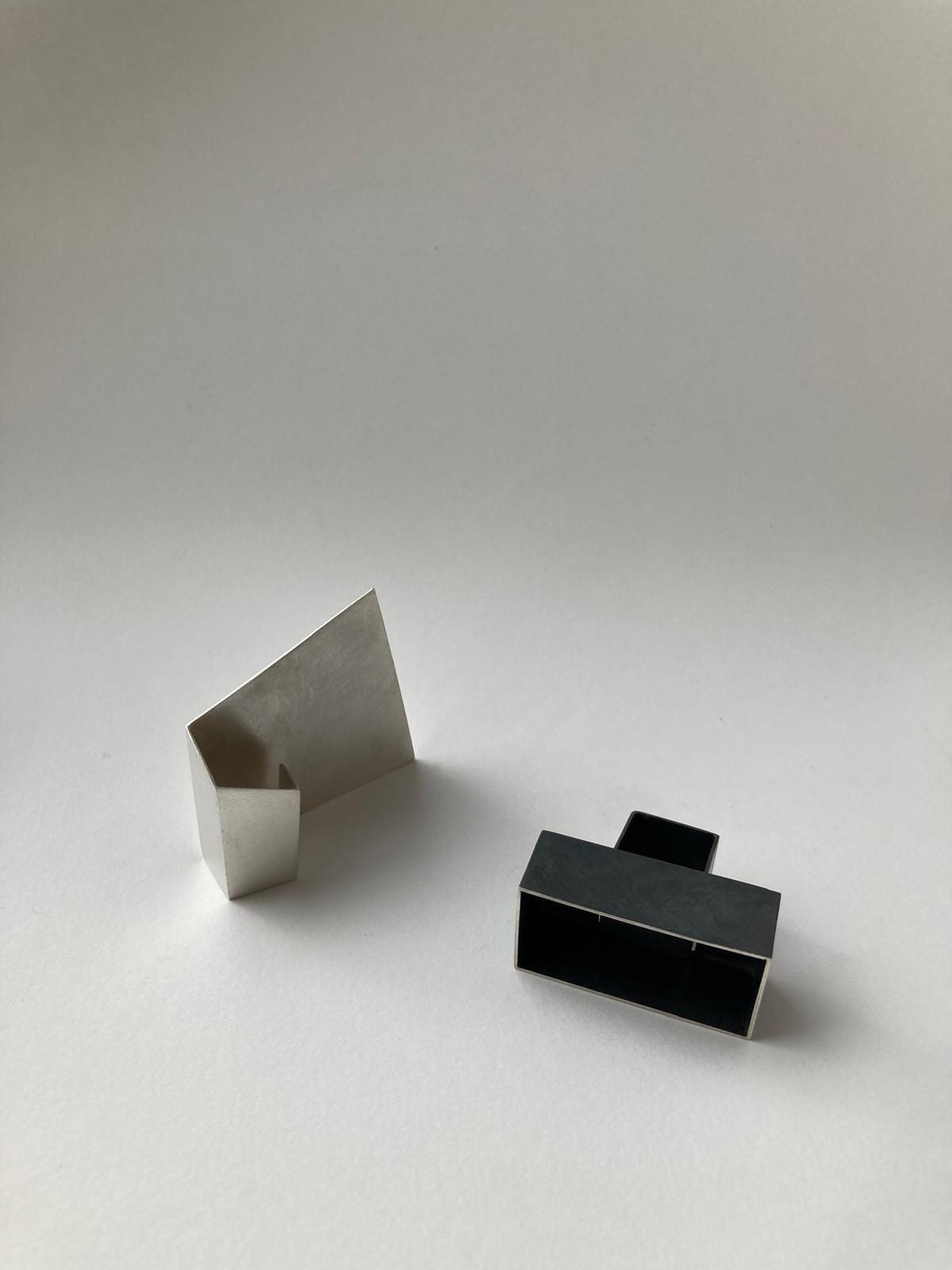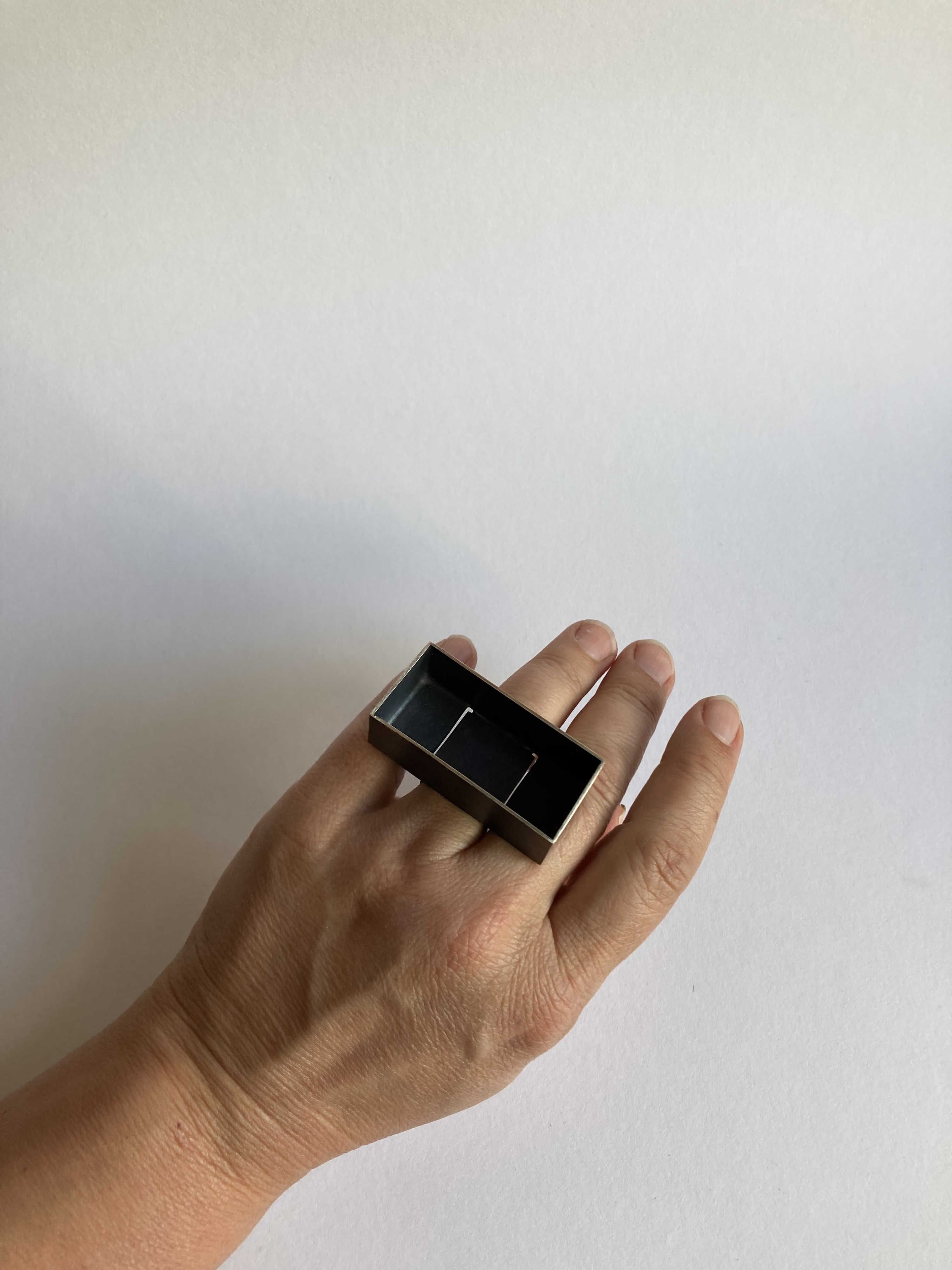 Tecnicaanello / ring, argento 925, patina chimica | score and folded sterling silver, chemical surface patina