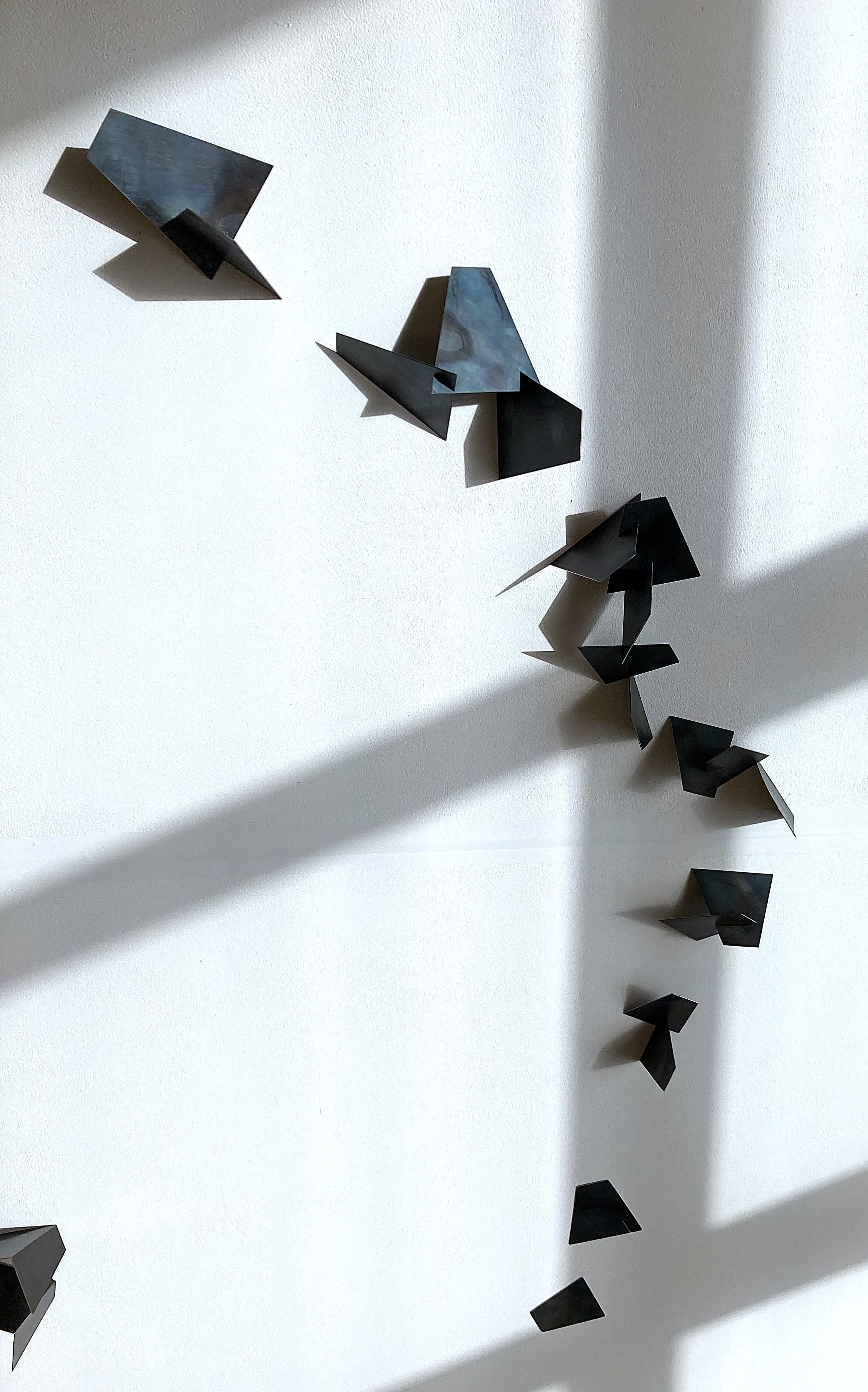 I am inspired by the lines and forms I see in elements of architecture, aiming to distil what I absorb from my surroundings. My practice is informed by exploring the shapes that come from the places I am inspired by, I belong to, and spend time in. I enjoy the process of finding repeating forms in the urban landscape and interpreting these through both worn and object pieces.