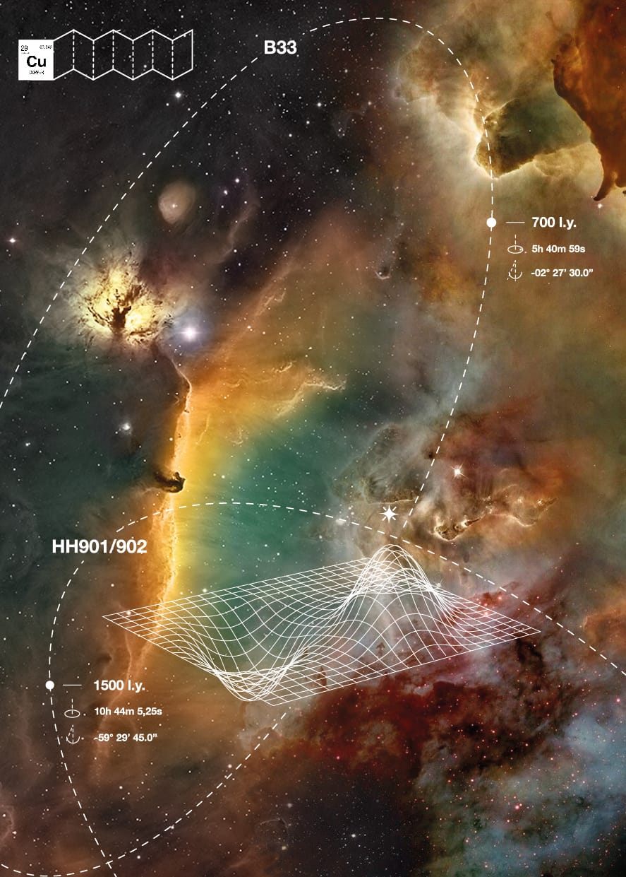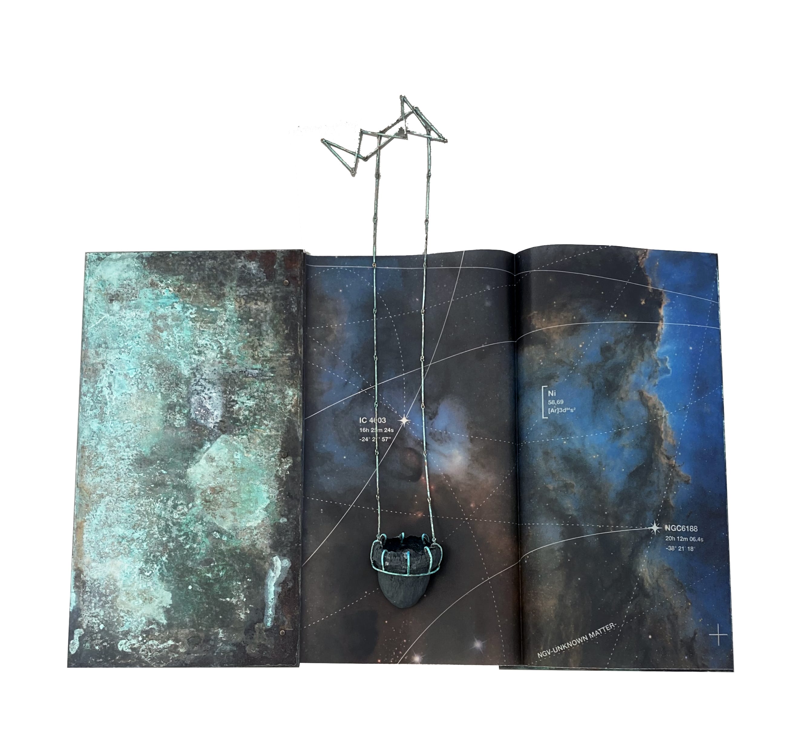 NoteNGC is composed of two precious books: the related jewels are constructed as agglomerates of dark matter, black holes revealing the birth of nebulae.