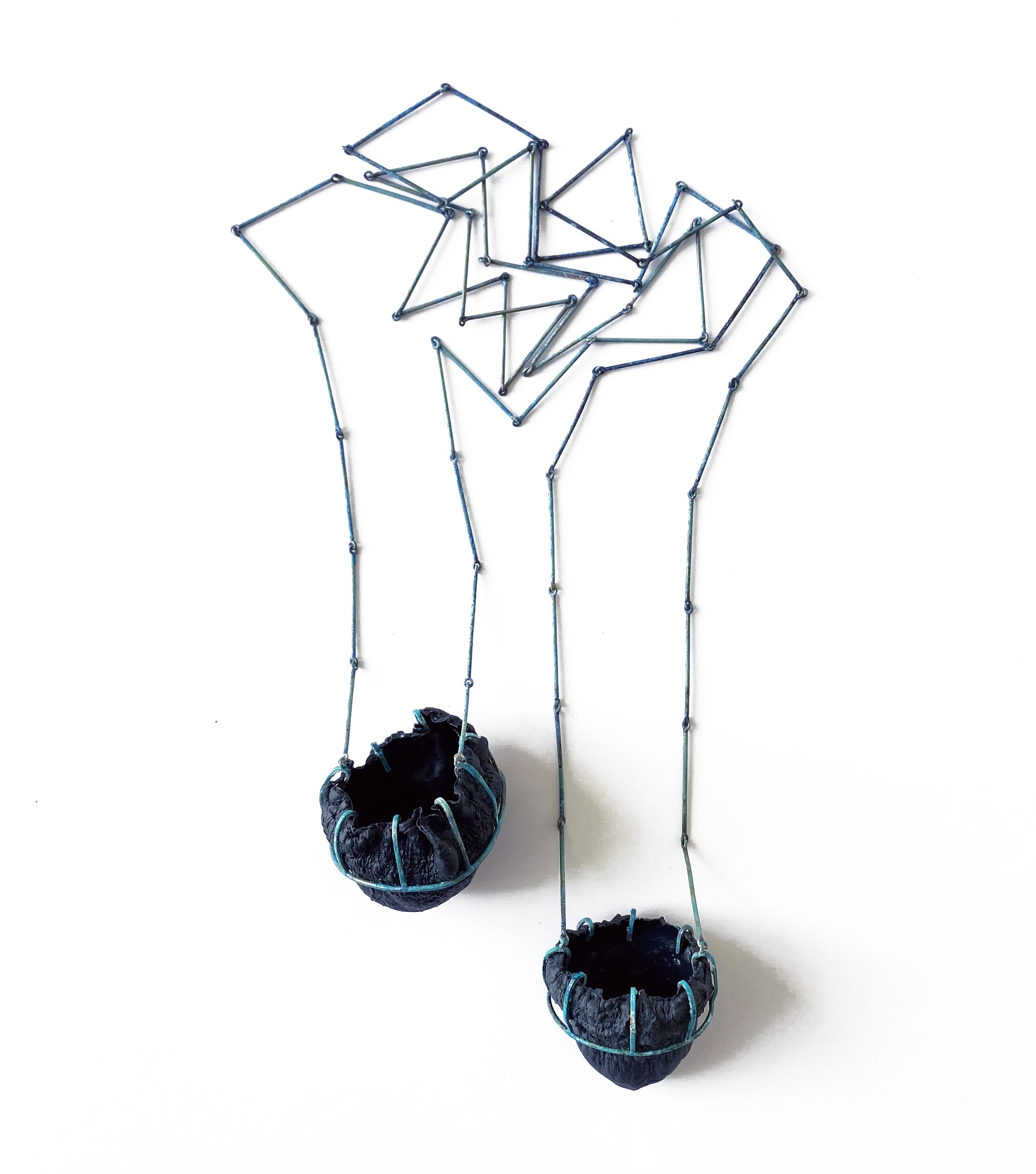 Tecnicalibro e collana / book & necklace , rame ossidato, porcellana nera, carta | oxidate copper, black porcelain, paper