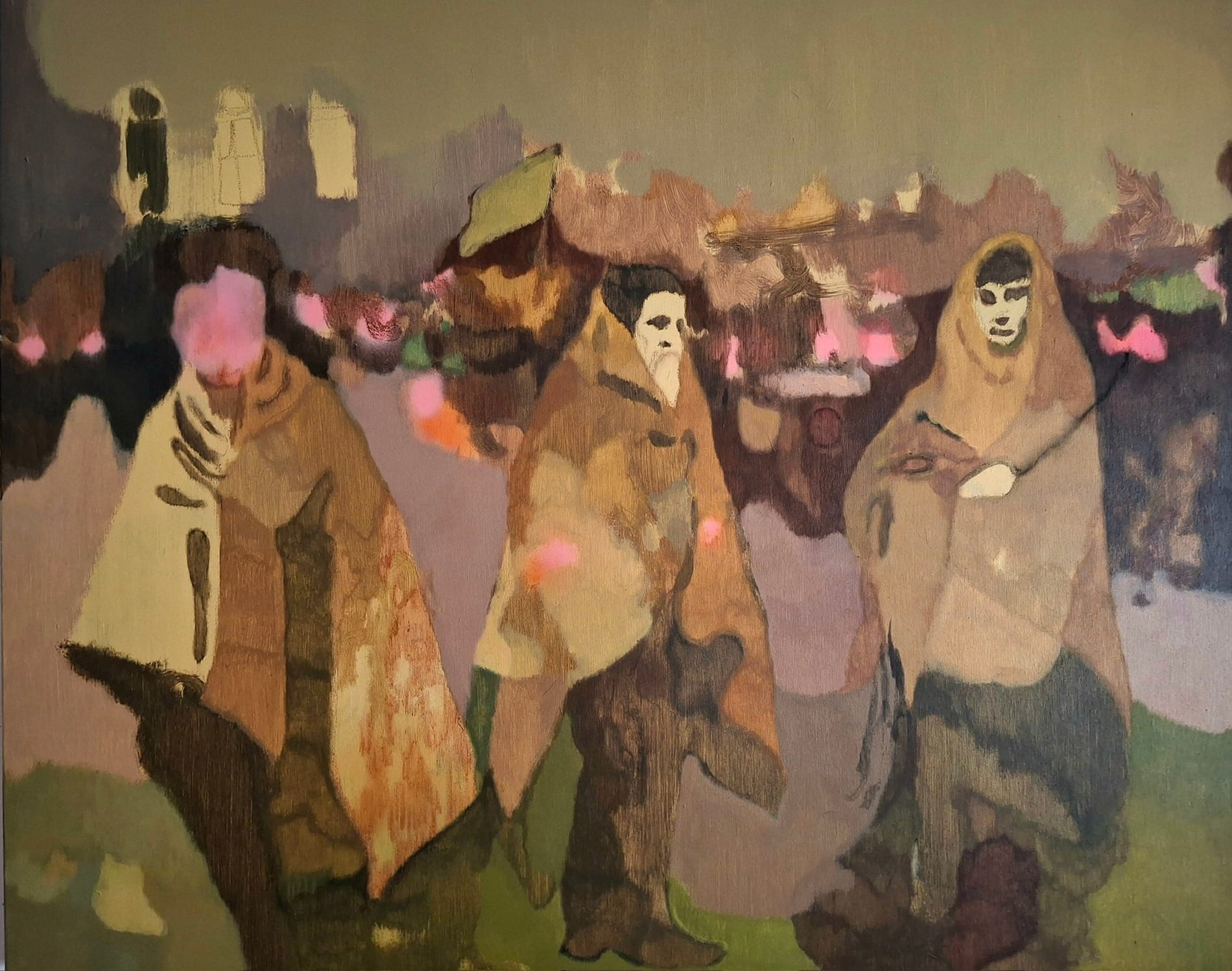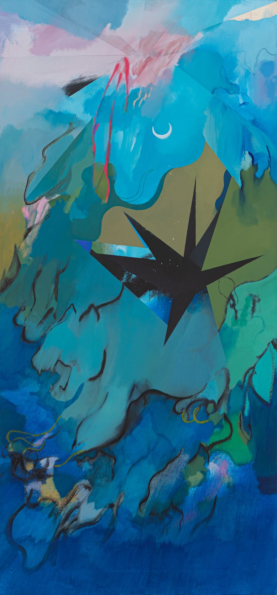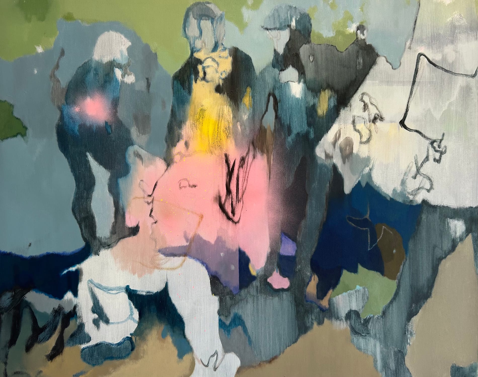 Acrilico, matite, olio su cotone grezzo