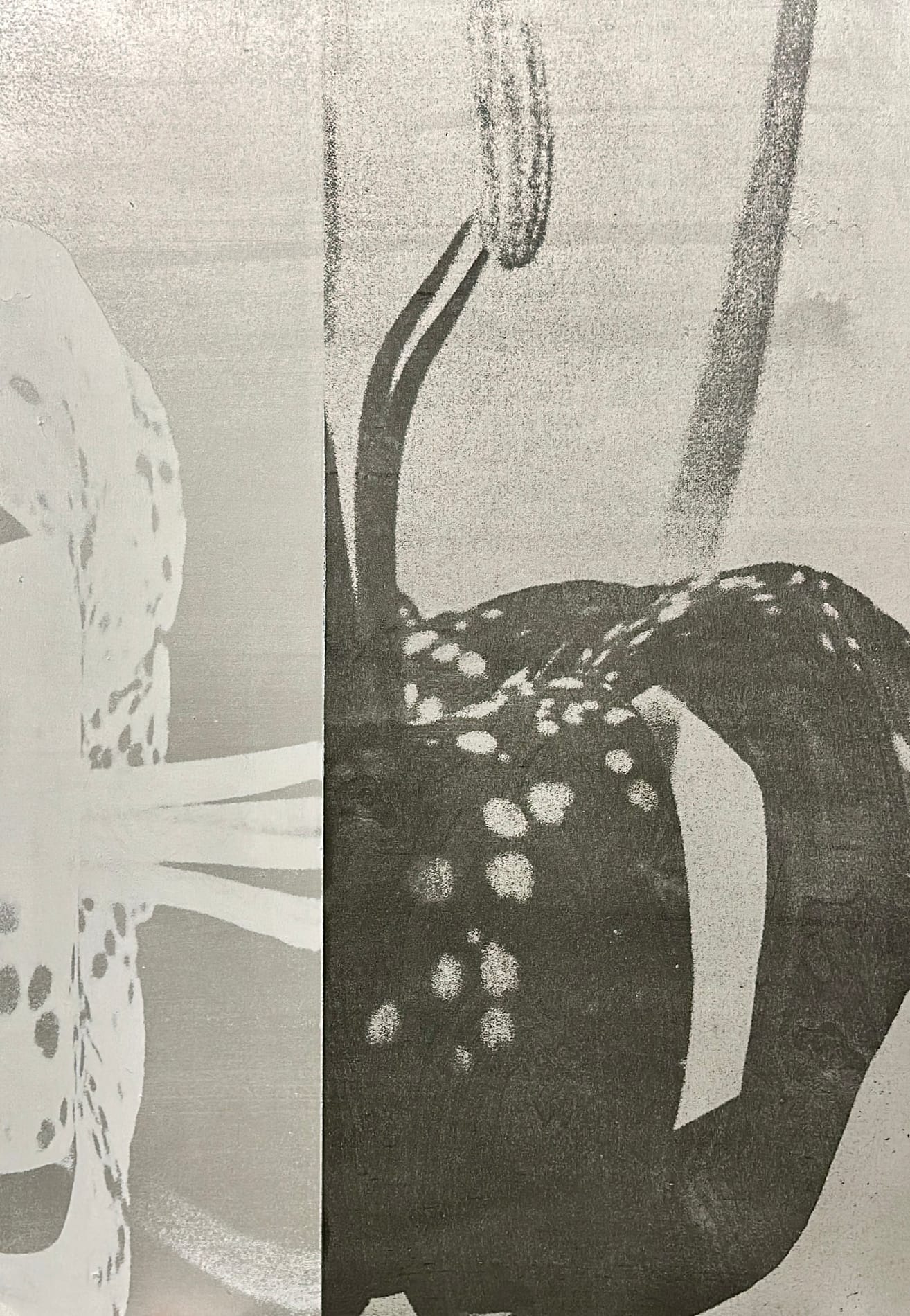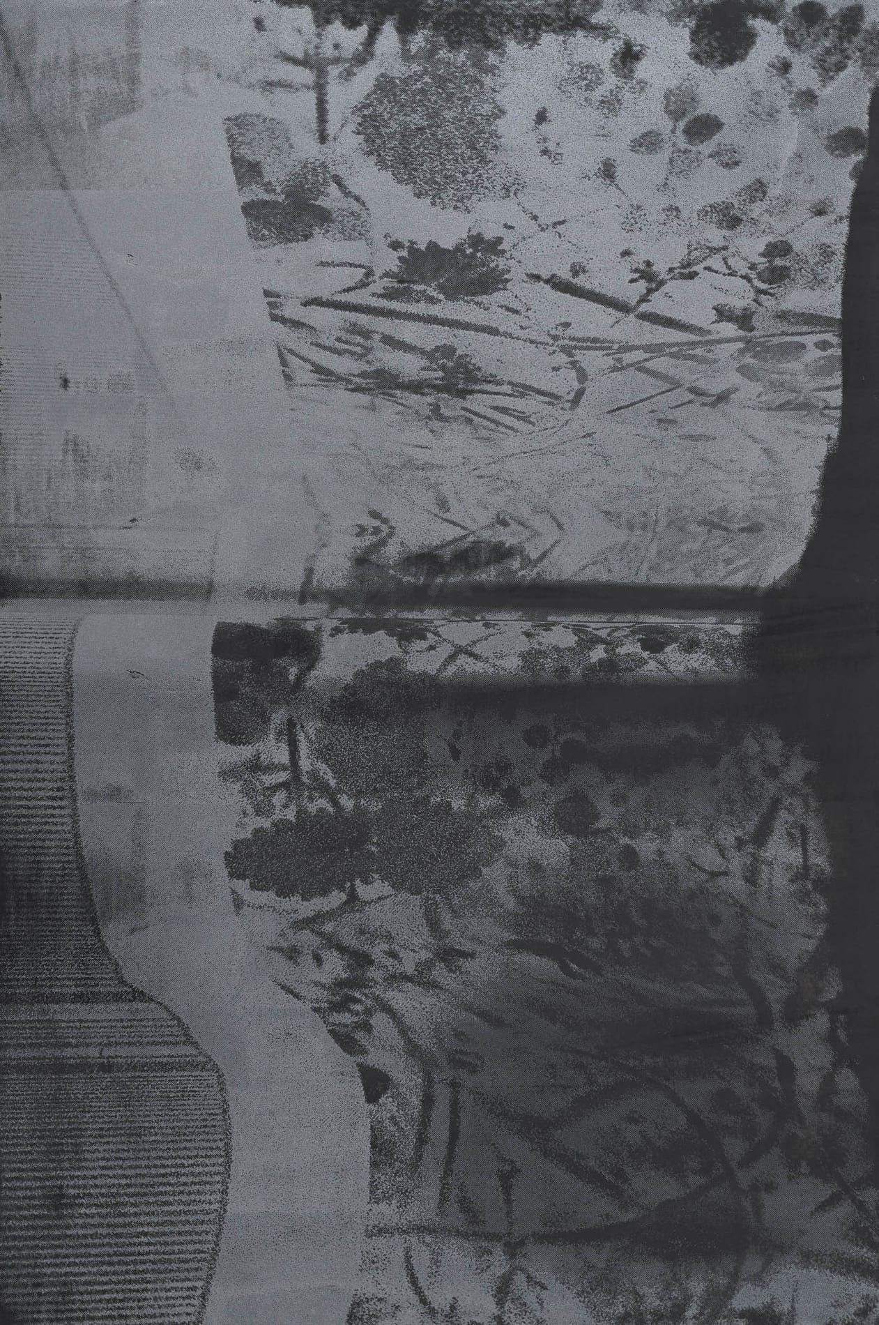 Inchiostro calligrafico e grafite su compensato di noce Tanganika