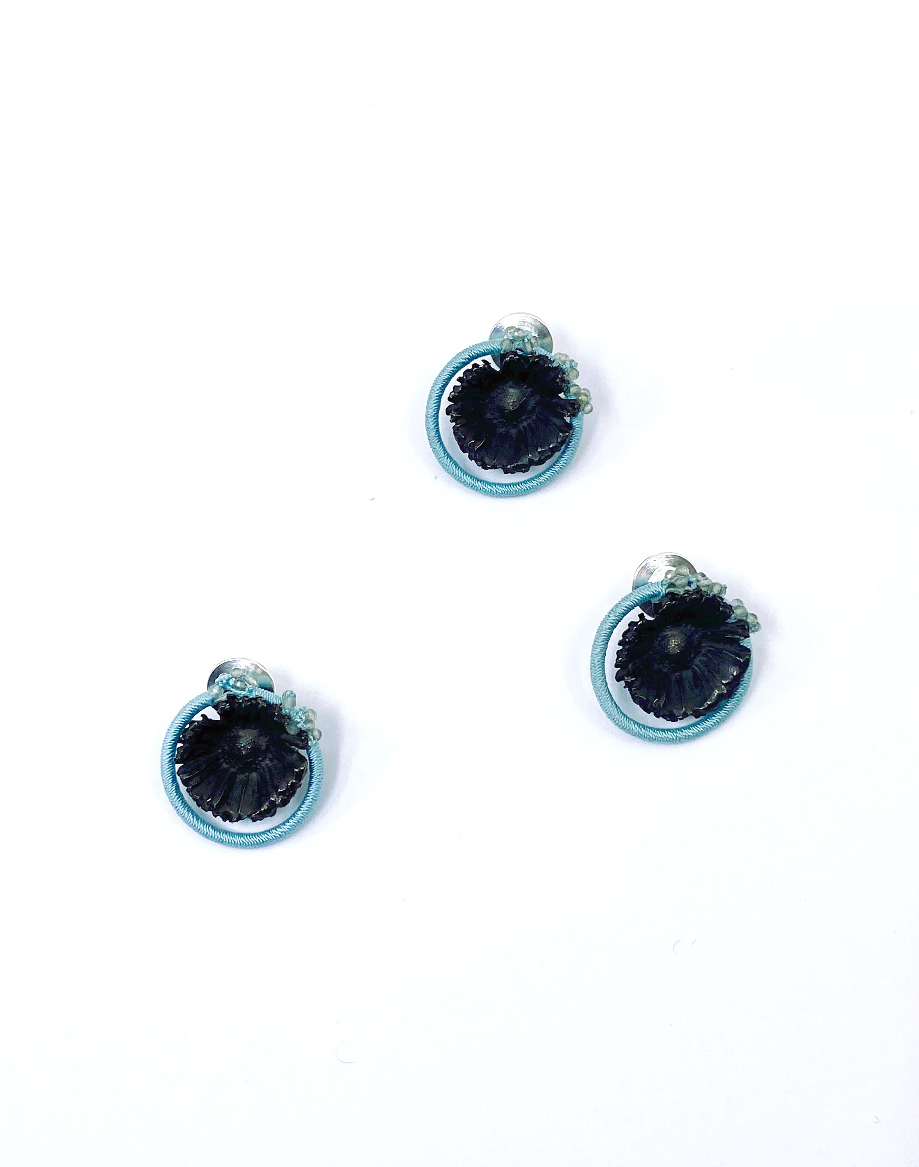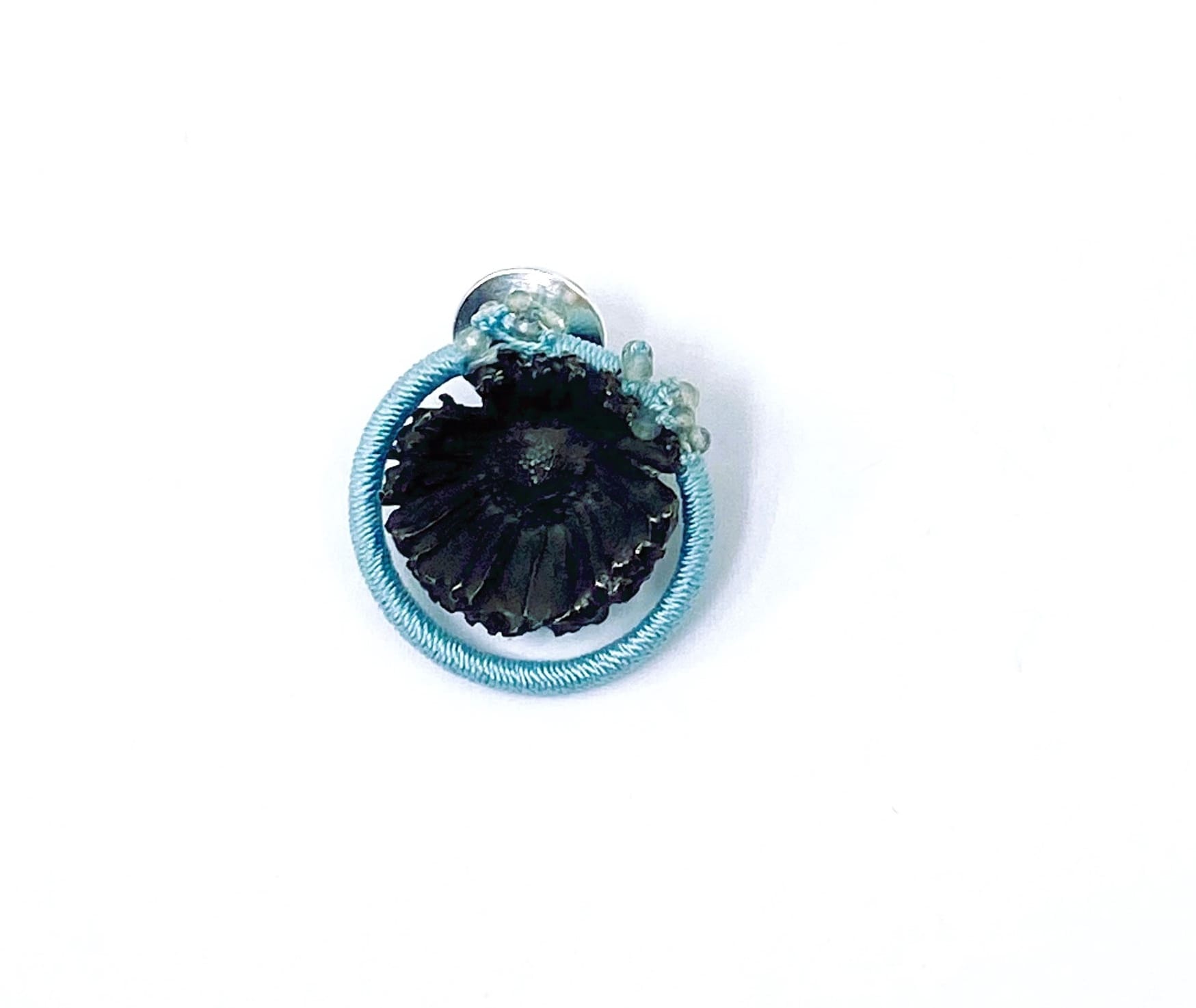 Tecnicaspilla / brooch, argento, labradorite, seta | sterling silver, labradorite, silk