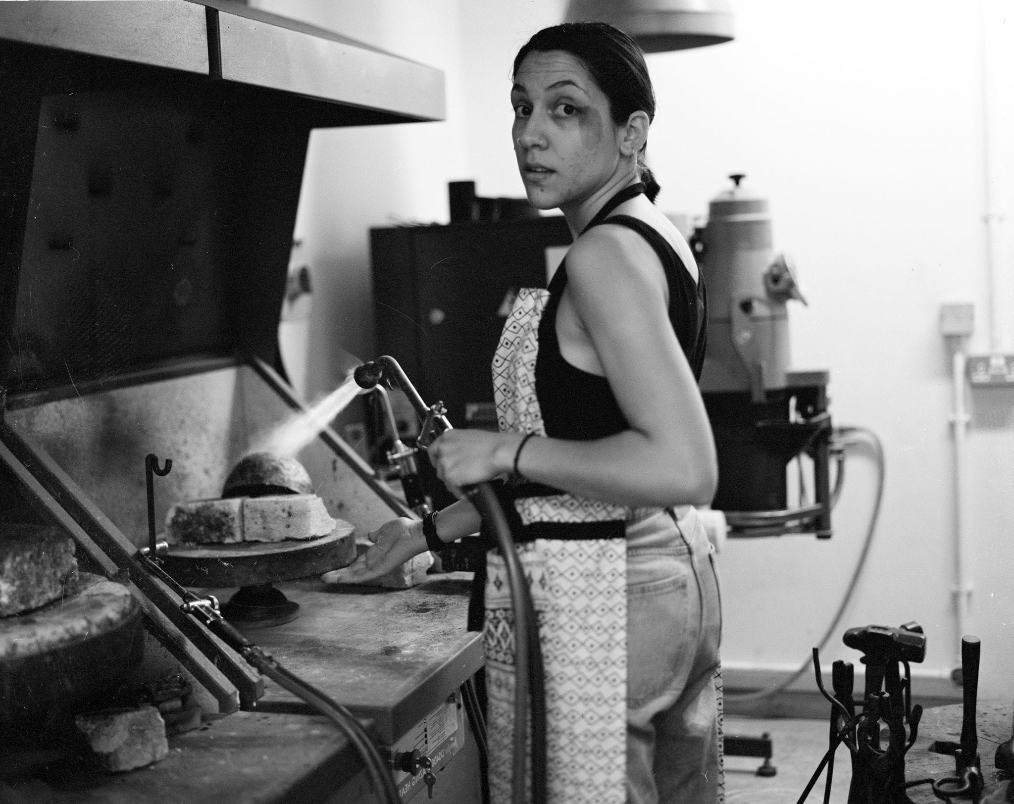 Techniques: Metal forming, soldering, piercing, filing, sanding, drilling, sandblasting, puk welding, riveting