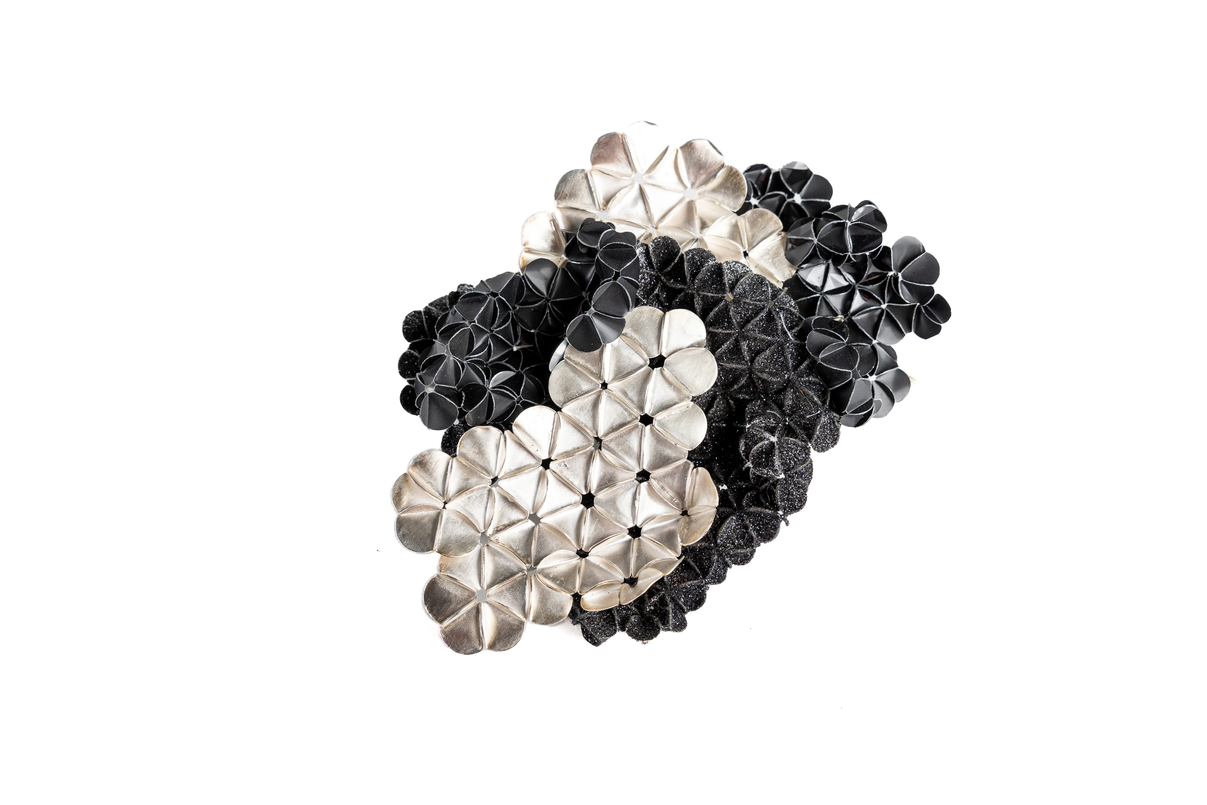 Through those artistic pieces I have been trying to investigate where the borders between transient and everlasting begins and how we define them. At first, when I began this project, the main accent was to emphasize the ever-growing concern of how we use plastic, such as packaging on daily basis. It made me think of alternative ways to give it a second life. While studying the physical properties of the material I found the vast potential to alter its form and through repetitive modules to give it structure and let those newly composed shapes unfold. The final pieces give the sensation of a living being, yet with architectural rigidity and form. It recalls us that working hand in hand makes humanity evolve.