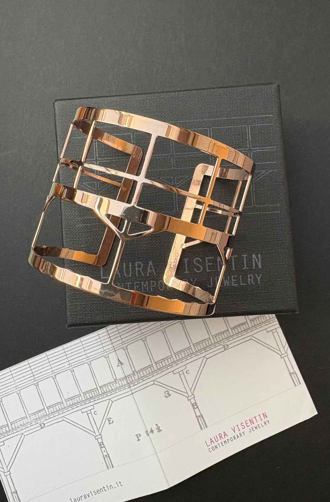 Laura Visentin is a contemporary jewelry designer born in Bassano del Grappa (Vicenza IT) in 1967, a daughter of an artist. After graduating with a degree in Literature, she accompanied her father, an eclectic painter and sculptor, in his artistic experimentation with a wide variety of materials and in his world of international art and jewelry exhibitions.