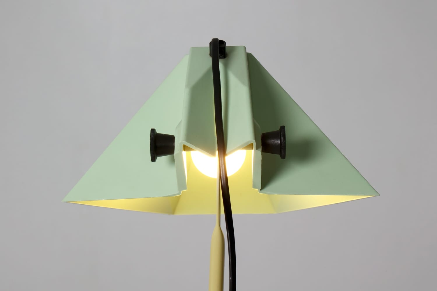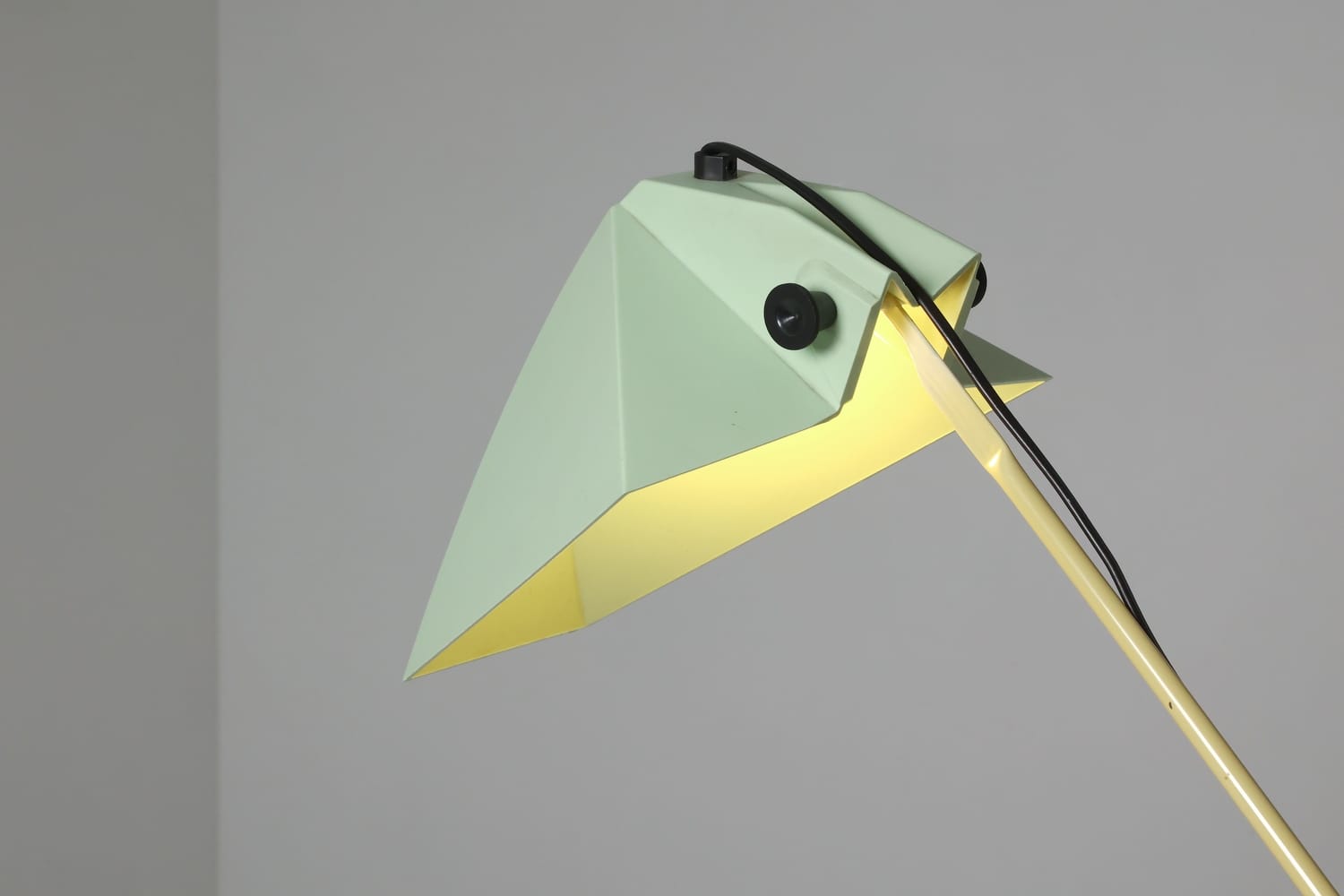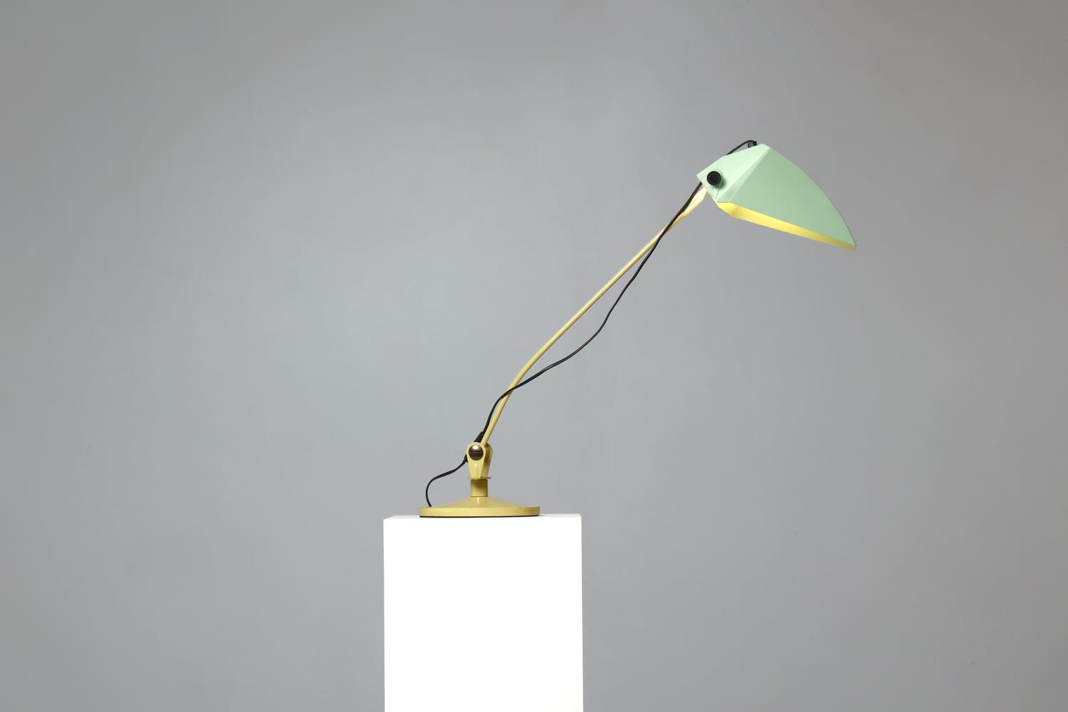 TechniqueIron cast base, beige lacquered metal stem and adjustable pale green plastic shade