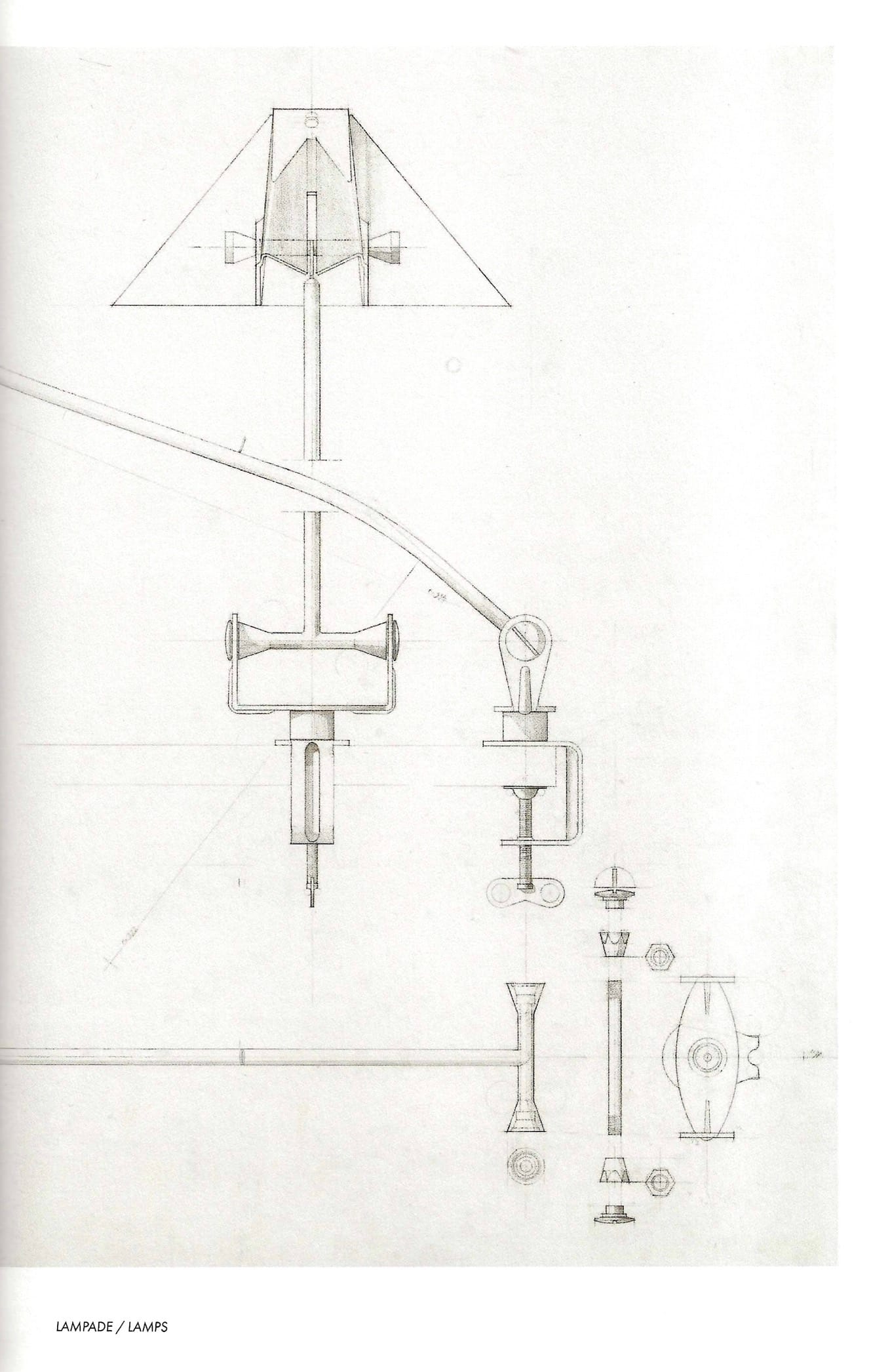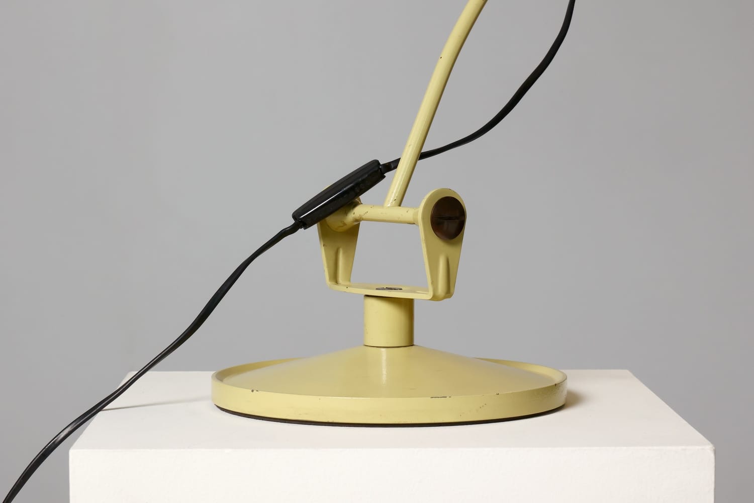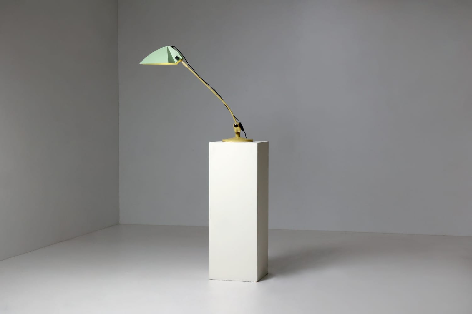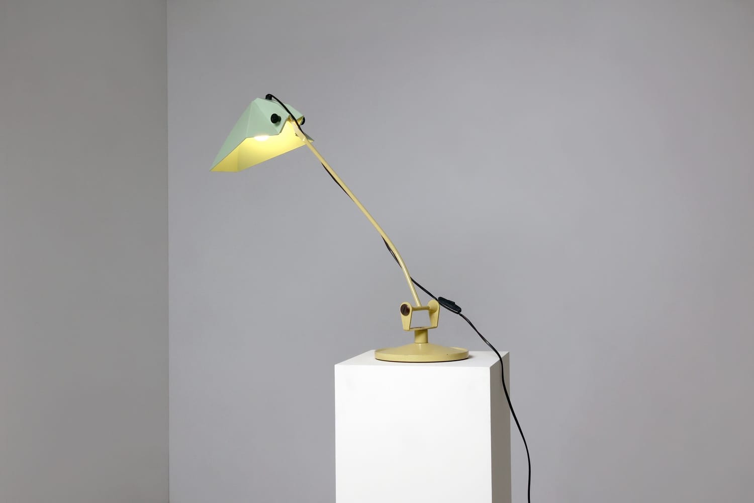 TechniqueIron cast base, beige lacquered metal stem and adjustable pale green plastic shade